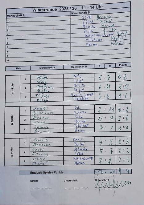 [Home] [Ergebnisse] [Rangliste] [Spielberichte] [Ergebnisse]