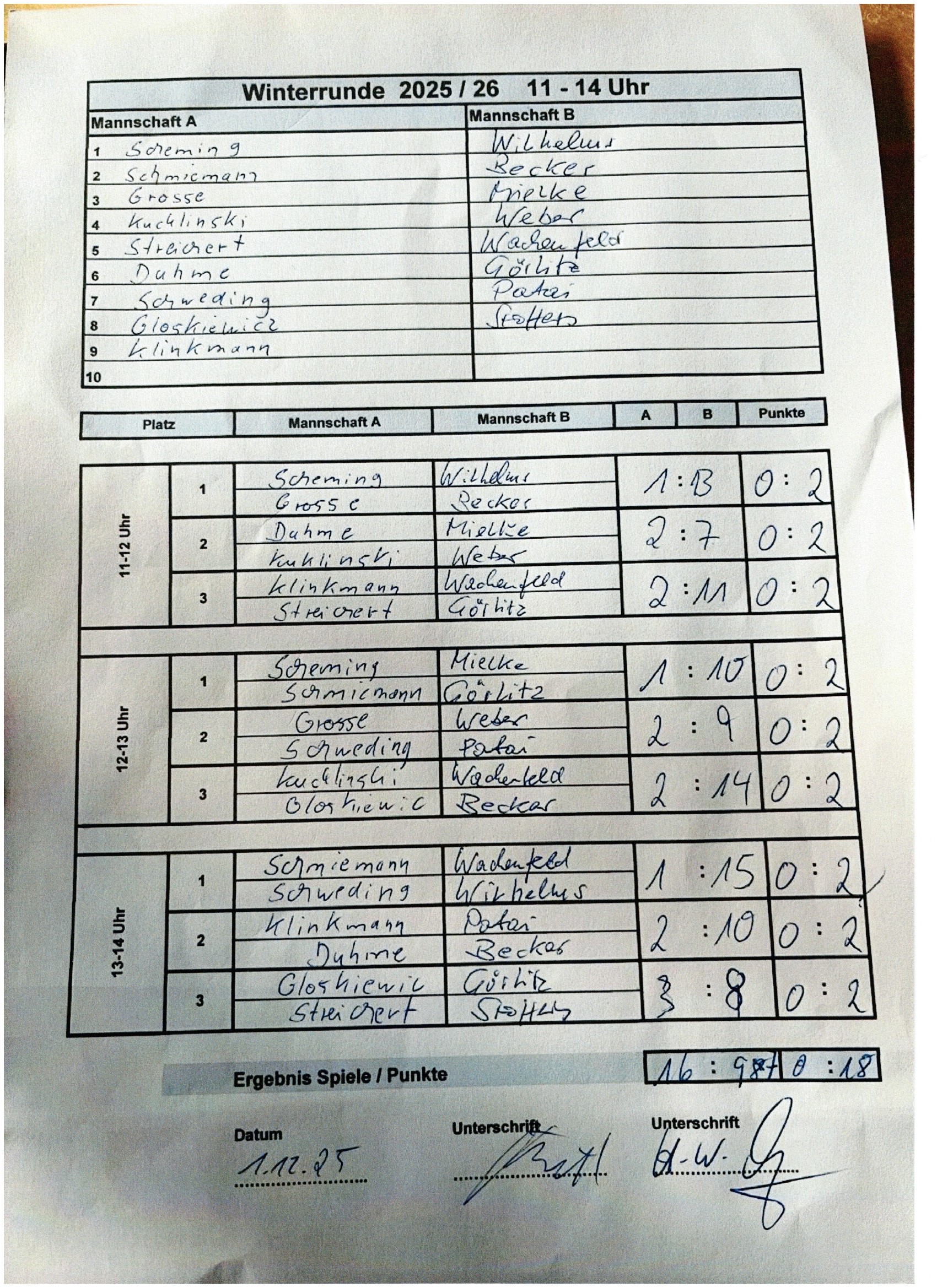 [Home] [Ergebnisse] [Rangliste] [Spielberichte] [Ergebnisse]