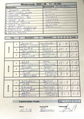[Home] [Ergebnisse] [Rangliste] [Spielberichte] [Ergebnisse]